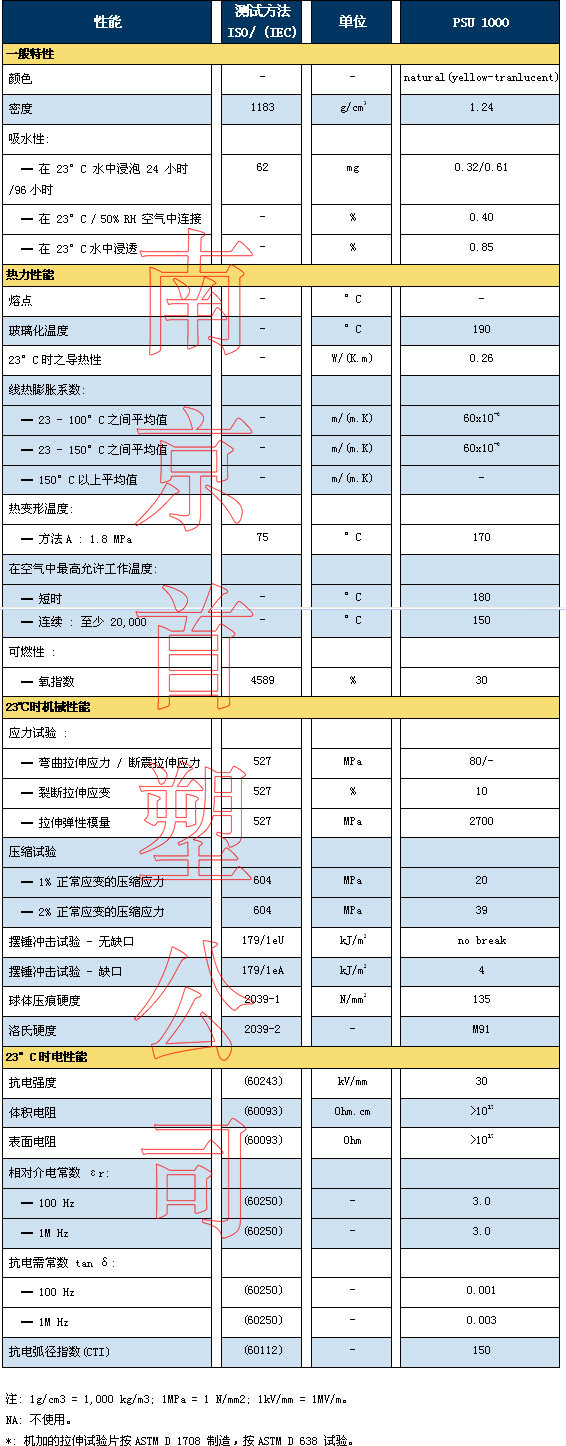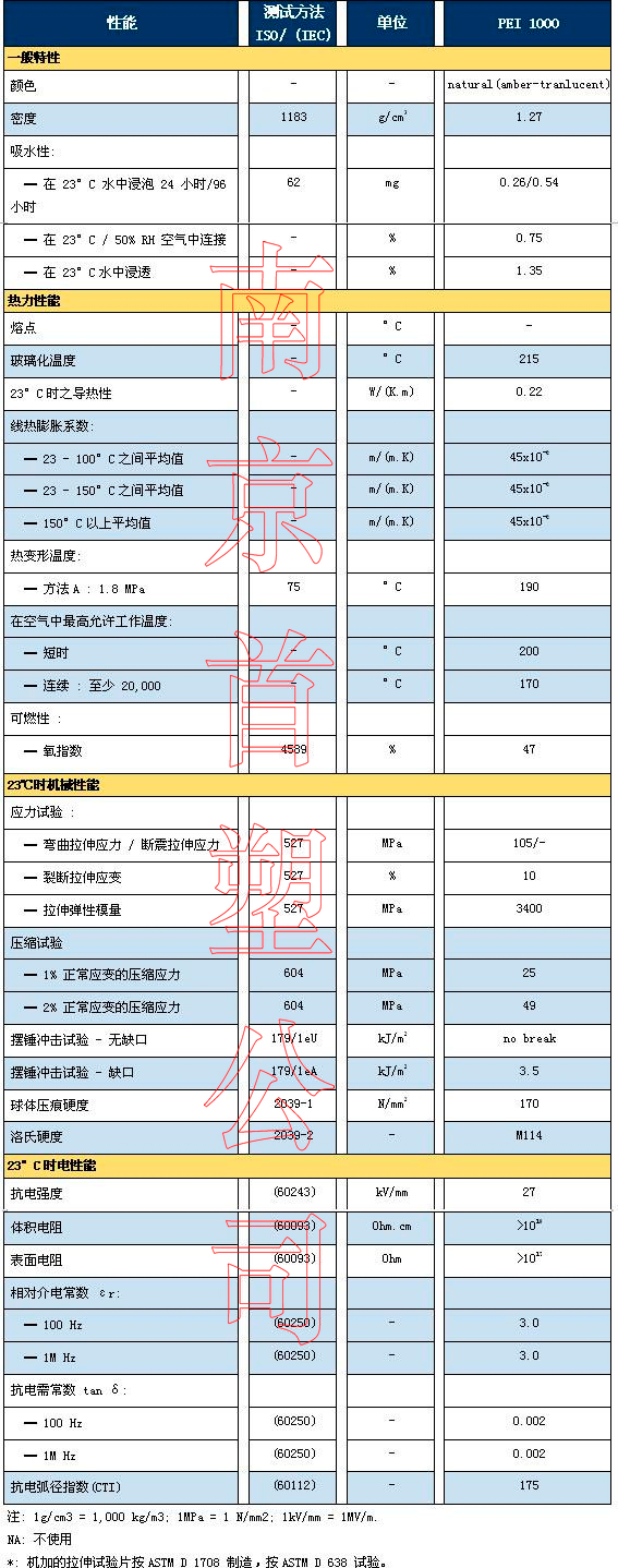 Nanjing Shousu PEI Performance Parameter Table